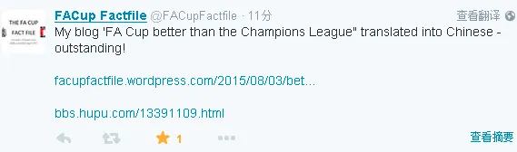 [翻译团]比欧冠更棒?足总杯魅力何在?由joutlaw 发表在英格兰足球 https://bbs.hupu.com/yingchao