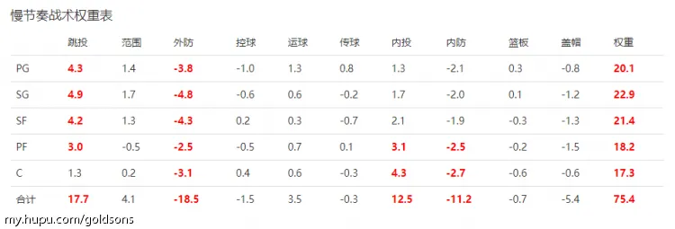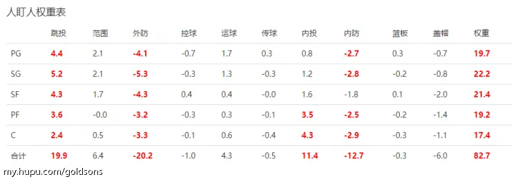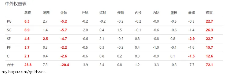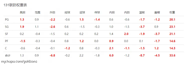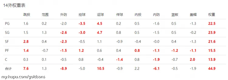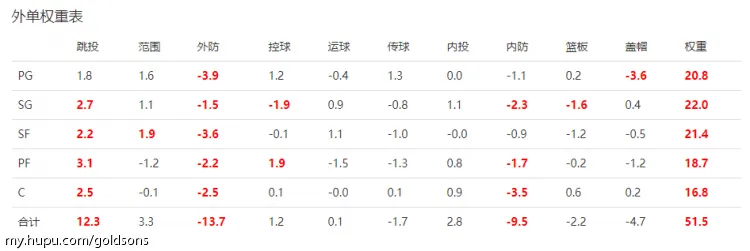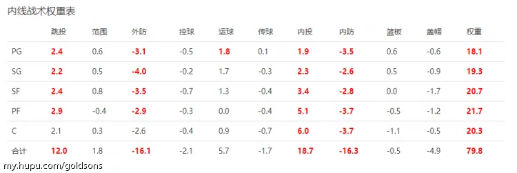 (2)通过(1)的介绍可以得知:数值越大,该技能对球员越重要。负数的权重对应防守效果的权重。