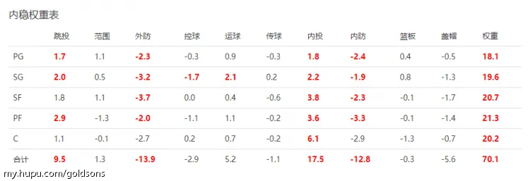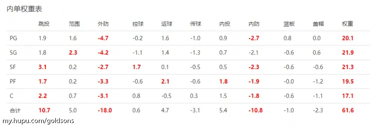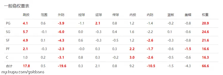 (3)右下角的数字越接近100,结果越可靠。(4)由于数据量有限,分析结果存在误差。请只关注绝对值较大的技能,部分技能如传球、篮板实际上可以不用看。