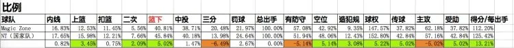 同时更快节奏也说明,球队在外单战术中,更容易找到较好的出手条件,所以国家队的数据告诉我们,中投和三分比例都略微下降了。