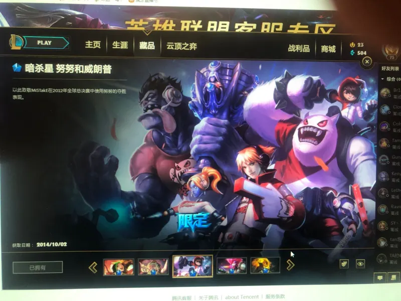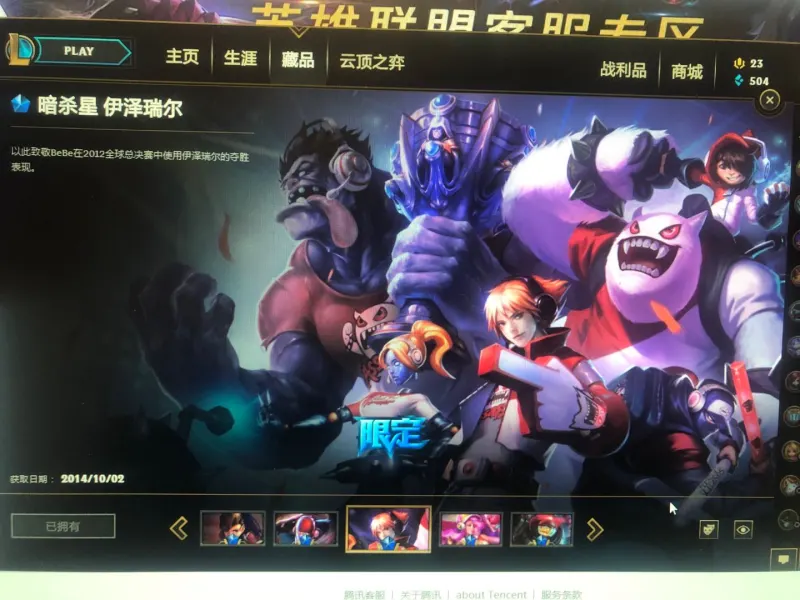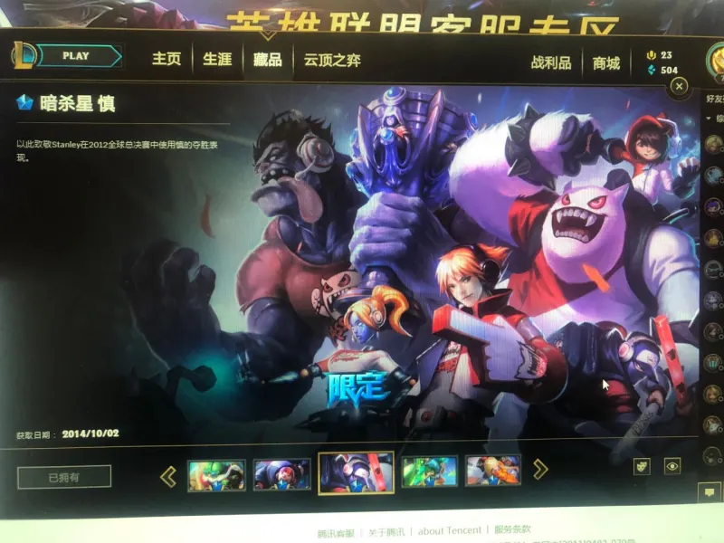 当时有活动送卡萨丁皮肤,现在没了,我只好重新买了一个。。