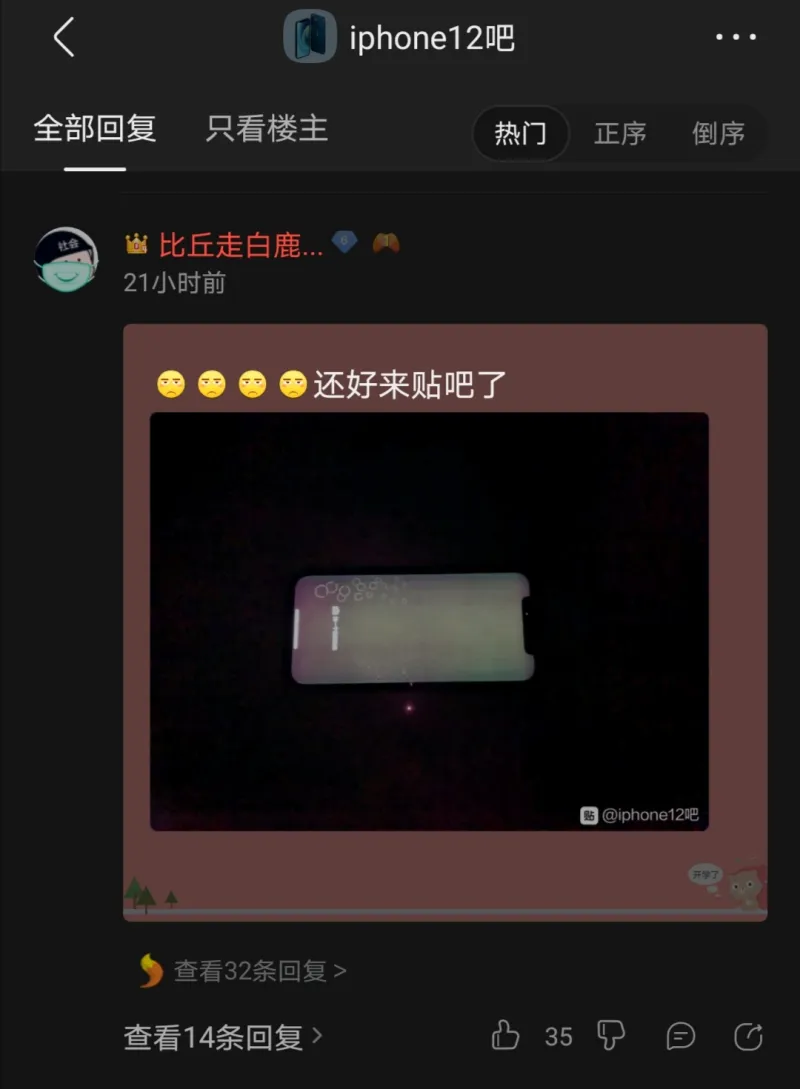 这个帖子已经挂在了iphone12吧首页推荐上,成为iphone12吧创立为止回复量最高的帖子。