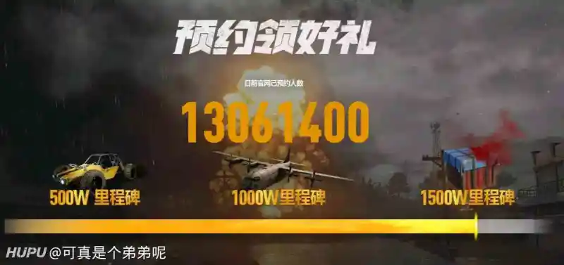 绝地求生的国服官网也随即公布(pubg.qq.com),热情高涨、满怀期待的国内玩家们纷纷涌入官网预约。在短短三天的时间内,官网显示的预约总人数已超过500万,突破了第一个“蹦蹦车”的里程碑,至今在国服官网上显示的总预约人数为13061400。