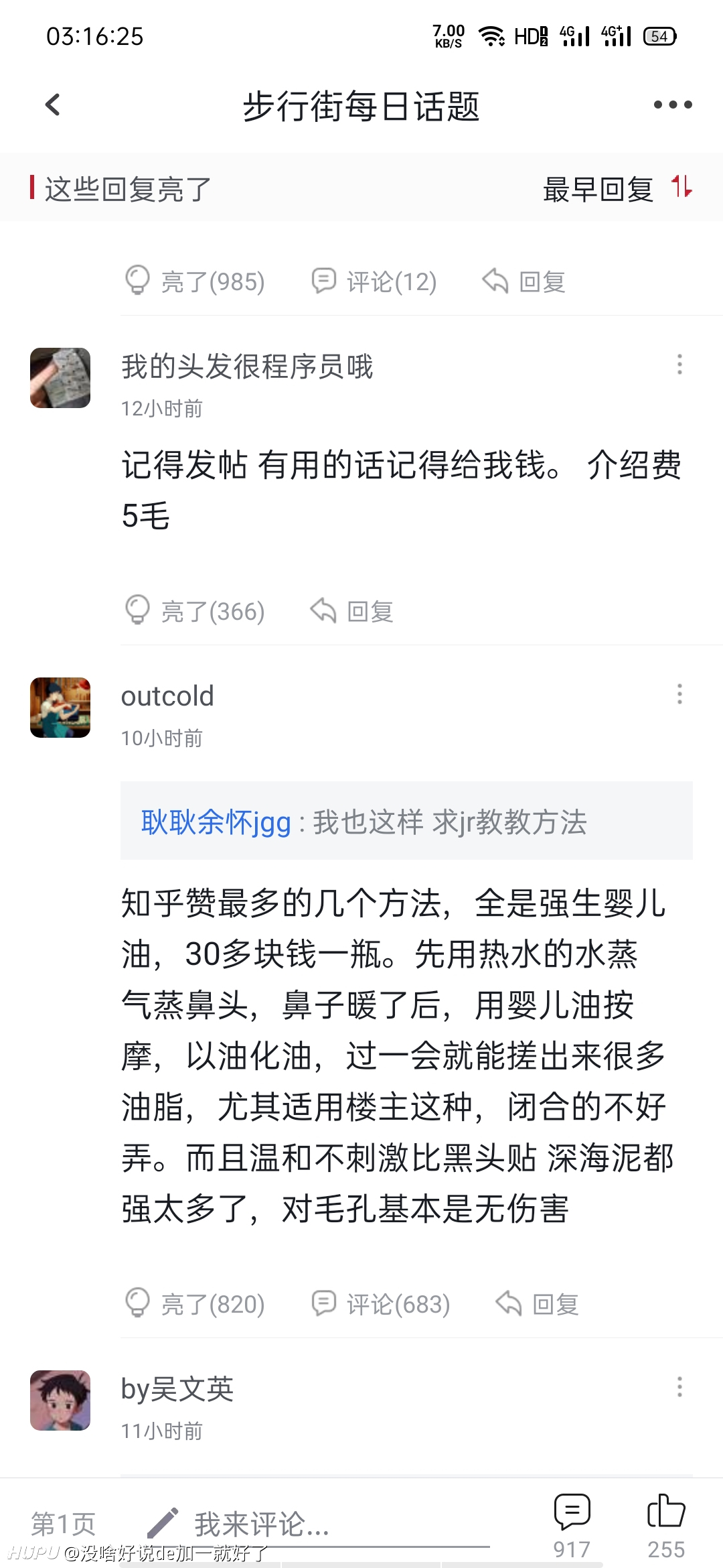 本人几乎没有用类似洗面奶面膜这些护肤产品,日常一般以水洗脸,但鼻子t区确实黑头也比较多,所以刚好前几天逛街看到推荐的去黑头方法,果断买了瓶婴儿油试试,果然效果不错,很温和,效果杠杠的。必须先洗脸,然后水蒸气蒸一下鼻子,本人也没有特殊仪器直接端个脸盆装满热水就蒸个3分钟,然后给点婴儿油按摩个10分钟,应该一天一次或者两天一次效果会越来越显著吧。哈哈,废话不多说,上图