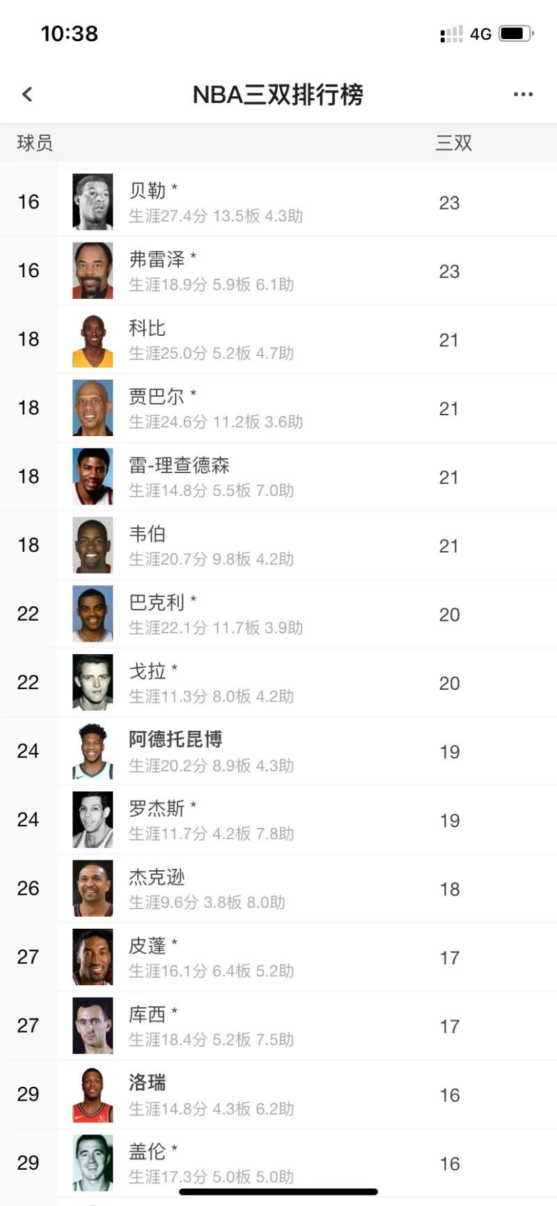 值得一提的是,阿德托昆博也因此成为了NBA历史上第28位拿下20次三双数据的球员。