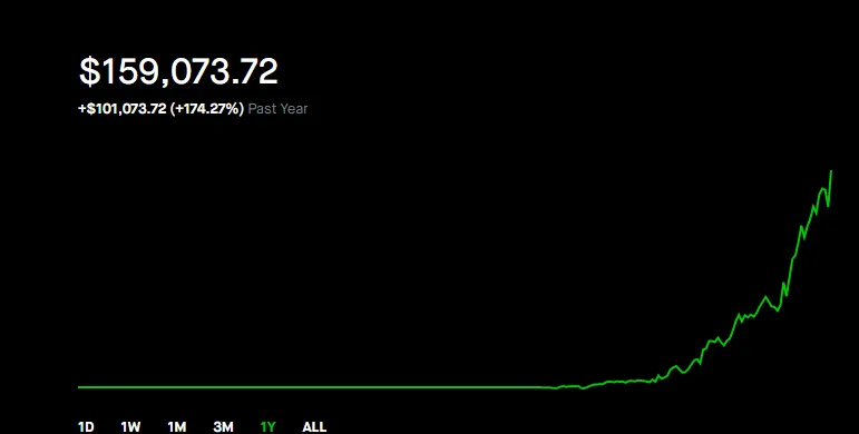 当前资金:1117万美元,折合RMB约7200万。17个月里涨幅约210倍。