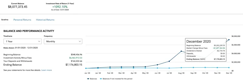 没错,他从一年多的时间里把五万三千美元变成了七百三十万。