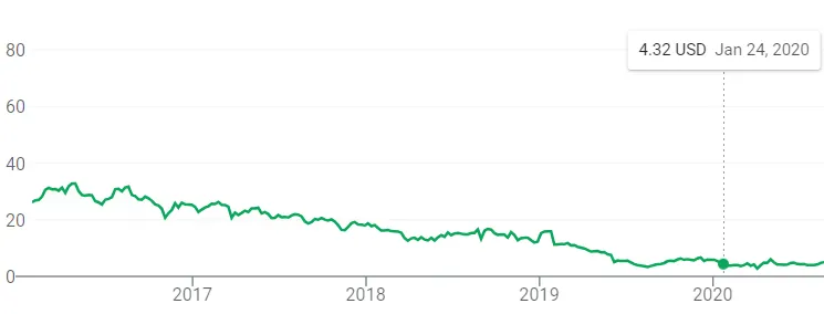 Gamestop GME 是一家游戏零售商,相信美国的各位JR都很熟悉。在现在科技发达人人通网的情况下,越来越少的人会去实体店里买实体游戏。楼主本人去Gamestop也就是买点手办游戏周边什么的。过去几年以来大多人对GME都不看好。股价从2016年的28一路跌到19年底的3块多。一直没有起色。
