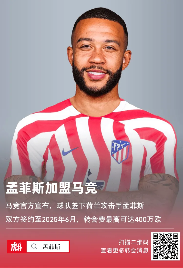 虎扑01月20日讯 马竞官方宣布,签下巴萨前锋孟菲斯,合同期至2025年6月。