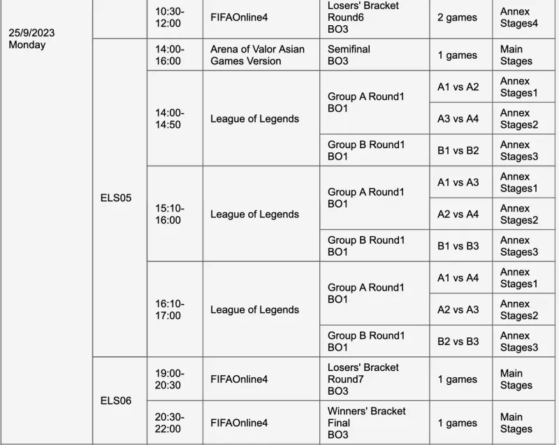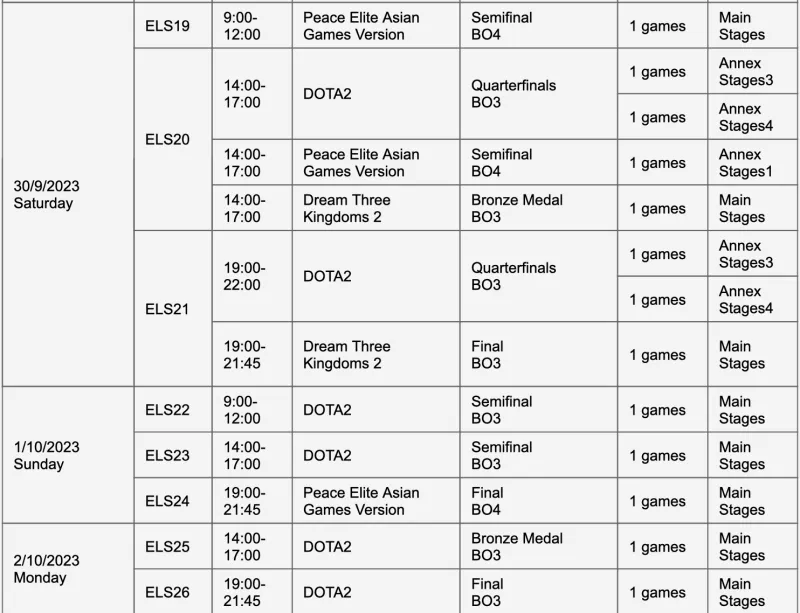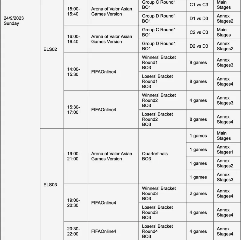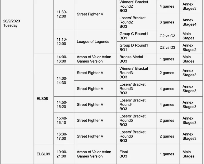 虎扑08月08日讯 2022杭州亚运会英文官网发布电子竞技项目具体赛程安排,明细如下: