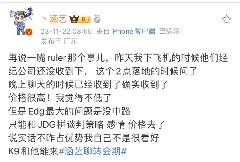 Tian续约后 weiwei成为自由市场上的香饽饽,