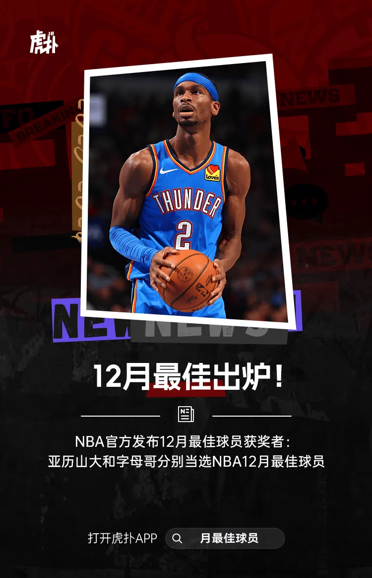 俄克拉荷马雷霆队后卫谢伊-吉尔杰斯-亚历山大和密尔沃基雄鹿队前锋扬尼斯-阿德托昆博分别当选NBA西部和东部12月份最佳球员。