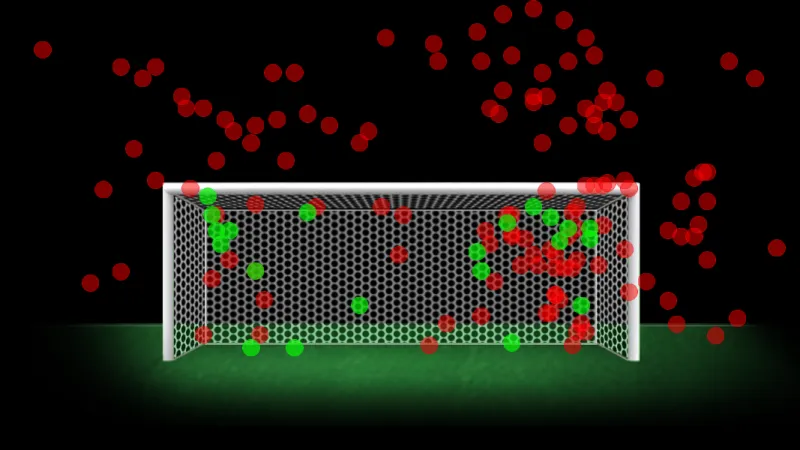 而OPTA方面推出了一个期望射正进球(Expected Goal on Target,xGoT)模型,而相较于传统的期望进球模型,它是一个事后数据。众所周知,如果一记射门没有打在门框范围之内,那么它是不能成转化为进球的,这是一个不可能事件。期望射正模型正是基于那些打在球门范围内的射门进行统计的,而在这个模型里,角度更加刁钻的射门所产生的期望值要比那些打向中路的更高。理由也很简单,角度越是刁钻,门将的扑救难度就越大,也就越容易转化为进球。