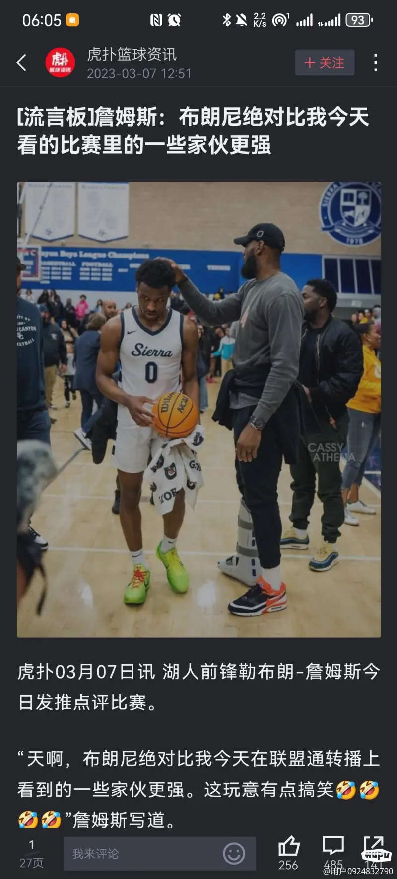 虎扑04月06日讯 今日,湖人前锋勒布朗-詹姆斯的大儿子布朗尼-詹姆斯宣布参加NBA选秀,同时保留自己的大学资格,并进入NCAA转学门户。