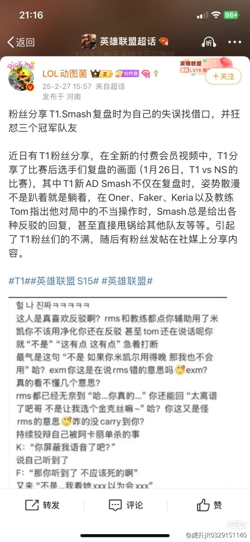 这个smash感觉像是财阀家的关系户,看t1语音他都敢打断faker指挥