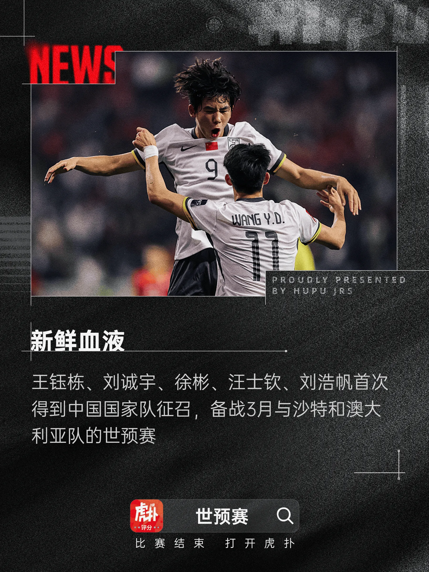 虎扑02月28日讯 在国足新一期集训名单中,共有5名球员首次得到了来自国家队的征召。