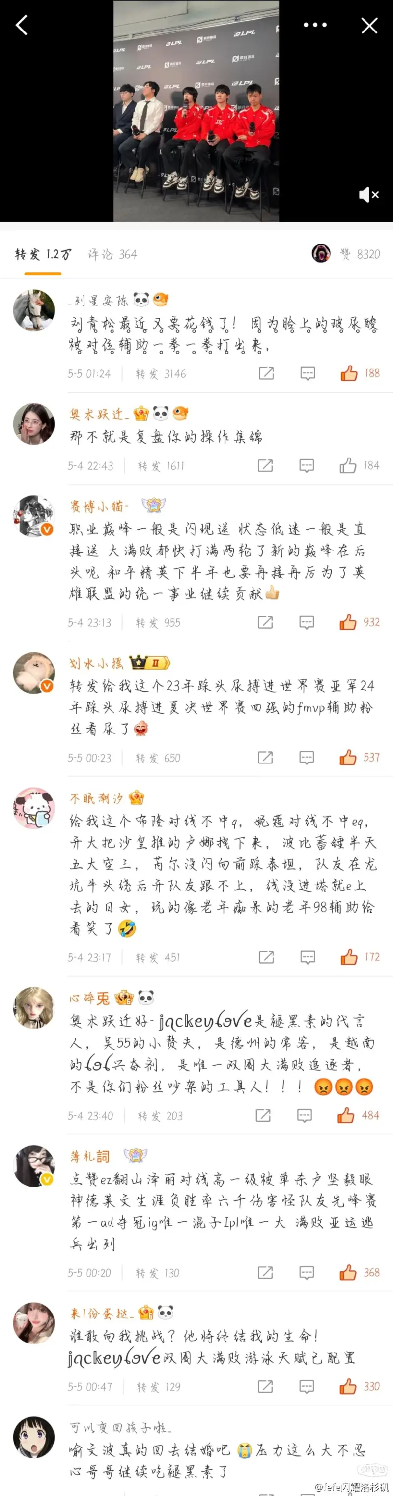 再回顾了下,四把确实夸张了,但三把没问题,第五把纯蹭局势的妮蔻糖的不行就别说了,加上还有逆天鬼打墙芮尔,整个bo5也就波比算正常发挥,而且我说了后续有明显好转,打we甚至可以算C了,无脑黑和无脑吹都没意义