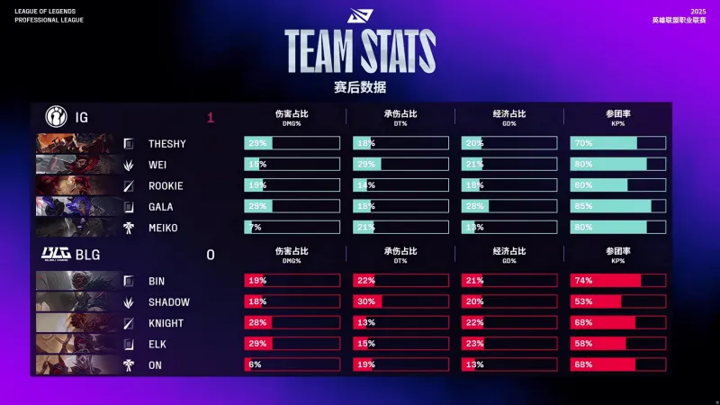 IG选用:TheShy兰博、Wei猴子、Rookie安妮、GALA芸阿娜、Meiko牛头