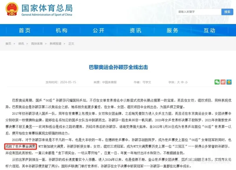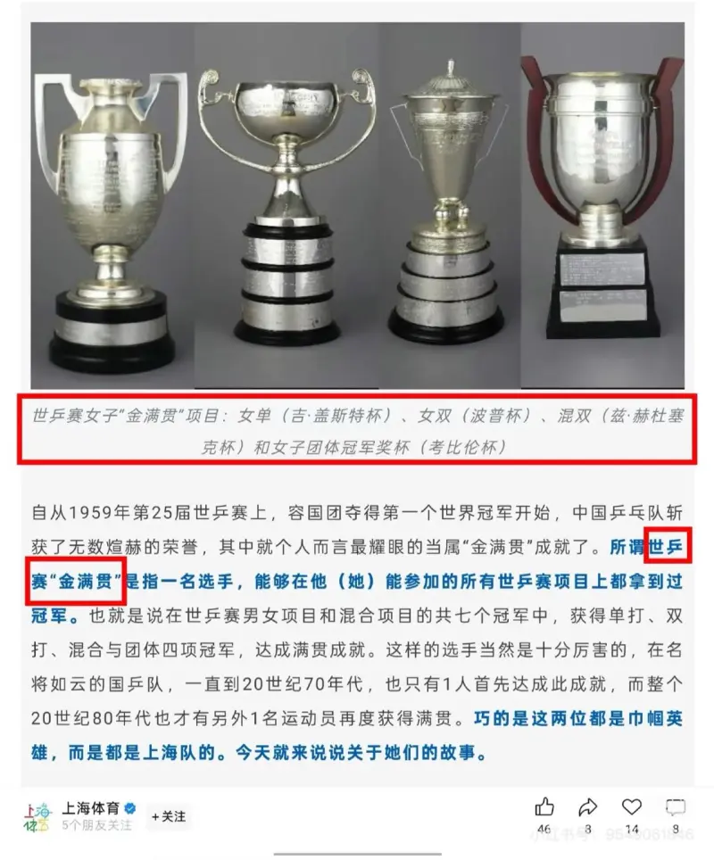 知道的少了,金满贯说的是世乒赛