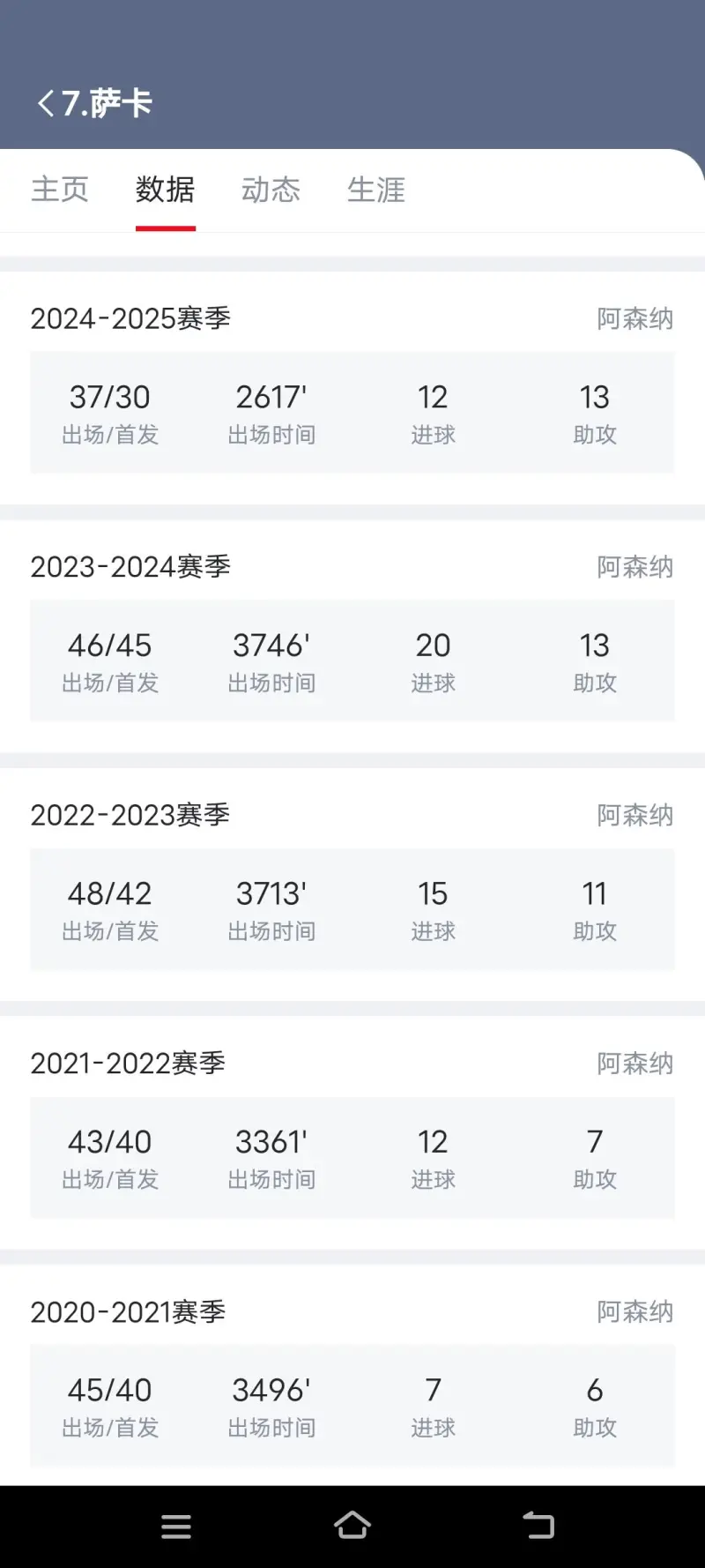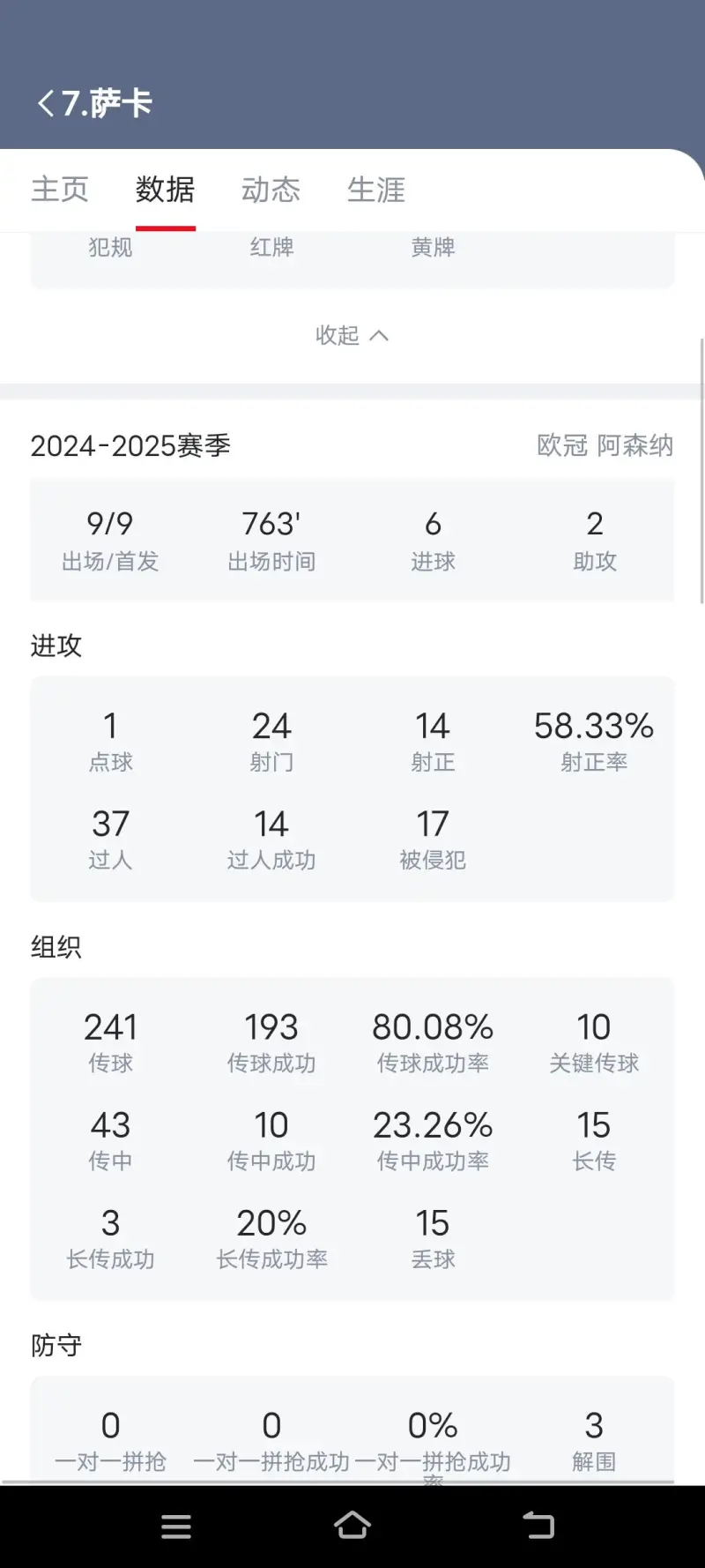 并且萨卡上个赛季欧冠出战9场6个球两个助攻,奥力赛出战14场,5个球两个助攻,所以说请尊重一下萨卡