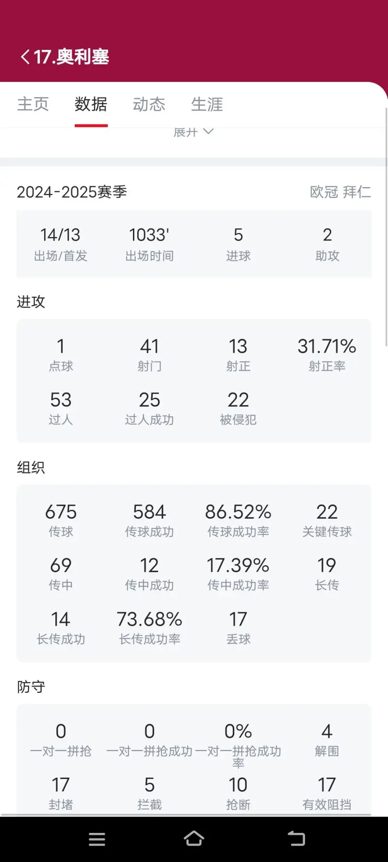 欧冠少踢5场还比奥利塞多一个进球怎么说呢?说了德甲数据看看就行