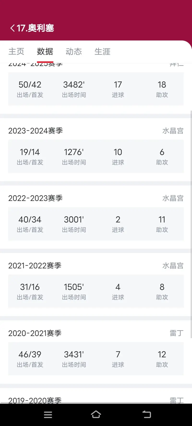 上个赛季萨卡的欧冠数据怕要比奥利赛要强吧,萨卡再差也不是奥利赛能比的吧,你说维尼修斯这些还差不多
