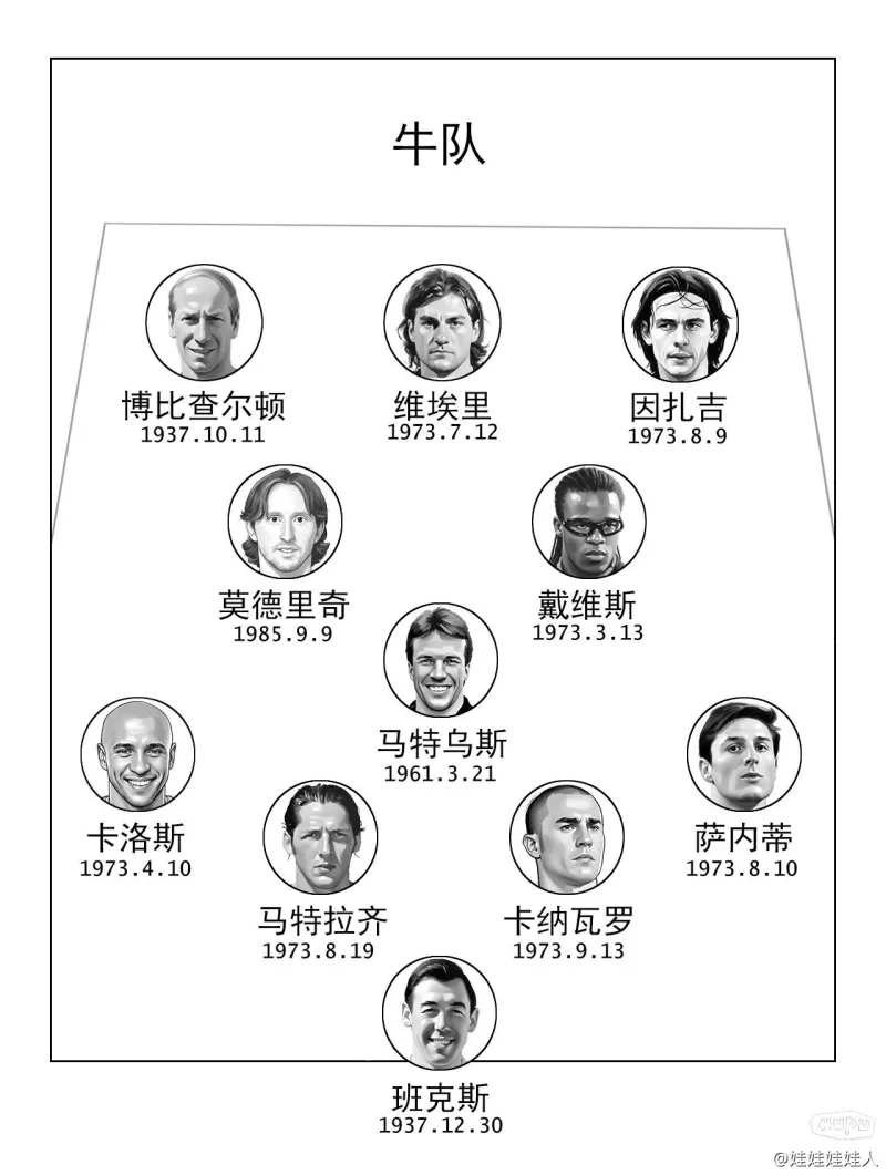 牛队最牛!阵容均衡,全明星阵容就要看中后场合不合理,进攻看天赋就行了!两个意大利中卫,两个边上得去回得来,中场有硬度,有控制。博比查尔顿,有技术有体能,左右脚均衡。莫德里奇,戴维斯,马特乌斯都是全能中场,体力怪。中场强才是真的强!前锋就给那两个基友玩吧,维埃里自带体系,还有超级机会主义者。越看越合理!关键我就是属牛的[奸笑]