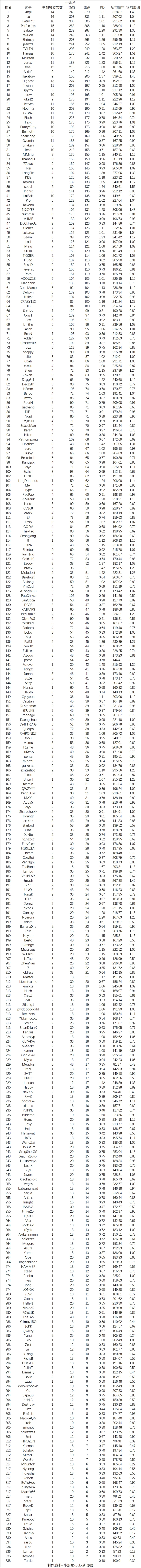 2.有改名的选手已经重新更正数据