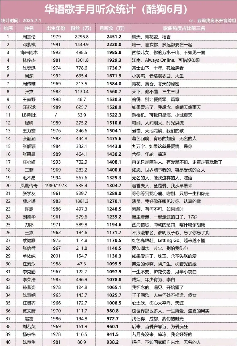 这十年qq音乐歌手变化榜单你就找到这几张图