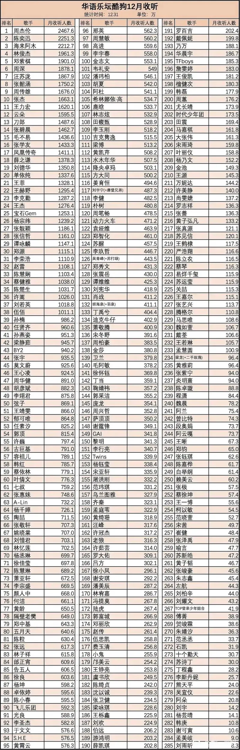 慢慢来吧。刚逛吧被科普到了。Q音那边邓紫棋收听最高的唯一是翻唱曲目。只能说邓紫棋也还是有点东西