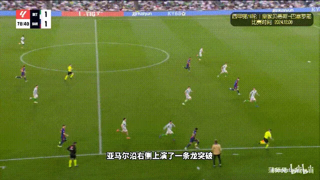 对阵贝蒂斯,亚马尔先是连过四人创造单刀,但被费兰越位抢断。随后以德报怨助攻费兰获得单刀打入超出比分一球。最后时刻巴萨造越位禁区真空,贝蒂斯传中,迪奥接球就射绝平。