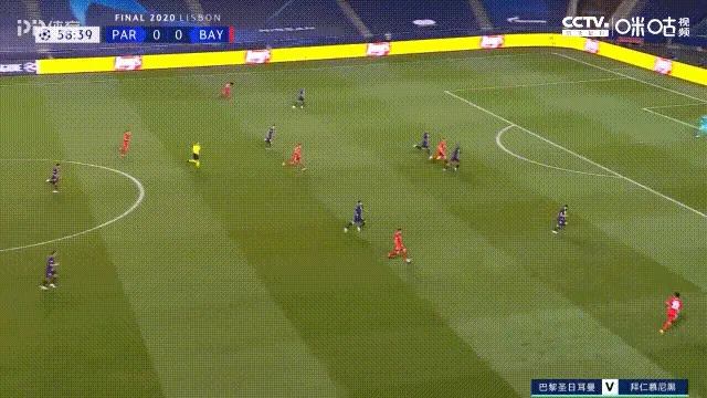 格纳布里下底传中走地面失败,巴黎解围送礼,基米希二次进攻高球传中,后点科曼空位顶远角得手