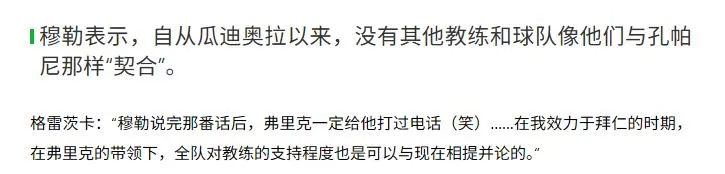拜仁高层,我记得海纳谈过孔帕尼是可以和海因克斯、瓜迪奥拉同档媲美的更衣室气氛。穆勒也一直称赞瓜迪奥拉和球队的相性。反而只有格雷茨卡在穆勒忽视弗里克的时候为恩师打了个圆场。弗里克在球队赢球满贯的那年团结问题有所缓解,但他陷入困境后看起来并不能团结球队。