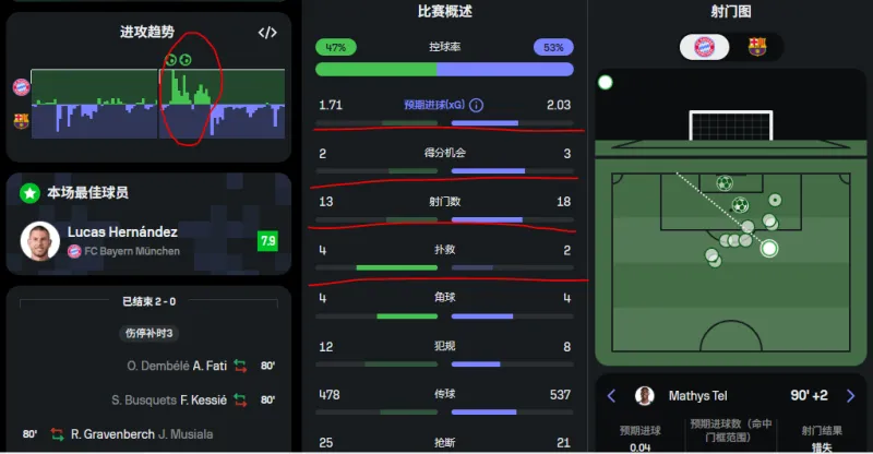 依照拜仁输巴黎,以及最近依靠亚马尔的发挥嘴硬弗里克没有被恩里克爆掉的不理智拜仁球迷,告诉我,同样的理论,谁配赢?我知道很多人不喜欢看数据,我也觉得数据很多时候不直观,他只是用来提醒我每个赛季熬夜50场比赛的记忆和判断没错。