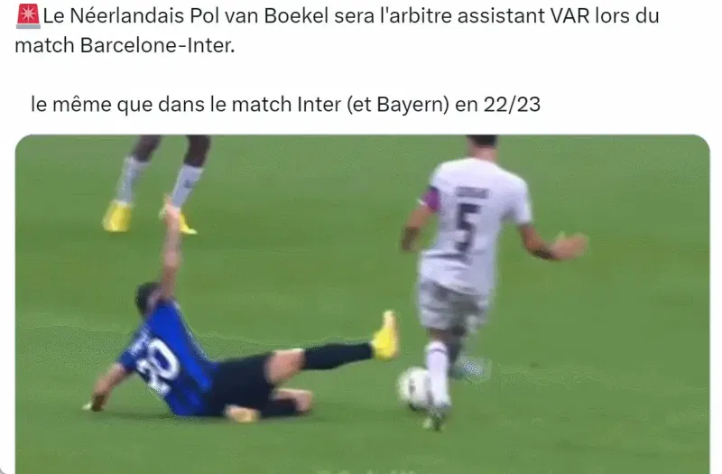 犯规接触明显在禁区内,阿芳完全没有获得球的可能,他这下踩的动作也没有获得球的意图。然而,没有var?为什么呢,也许就跟巴萨濒临破产连续遇见拜仁一样,拜仁不用打招呼,素来不留手,每年热身狂屠业余队两位数。巴萨是拒不退出的欧超御三家,拜仁是起初就不支持的忠臣。这是事实,不是当年贴吧编造g14的故事会。