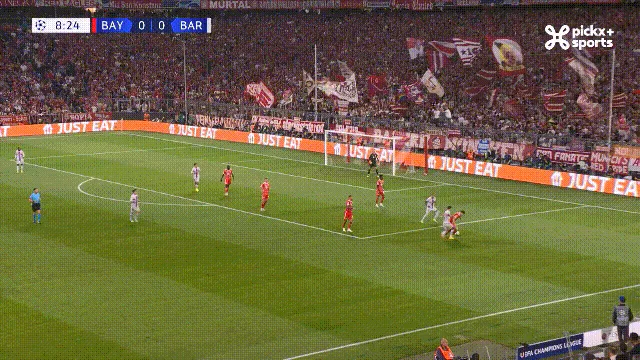 随后拜仁的第二次镜头,格雷茨卡远射制造角球,角球变成进球。