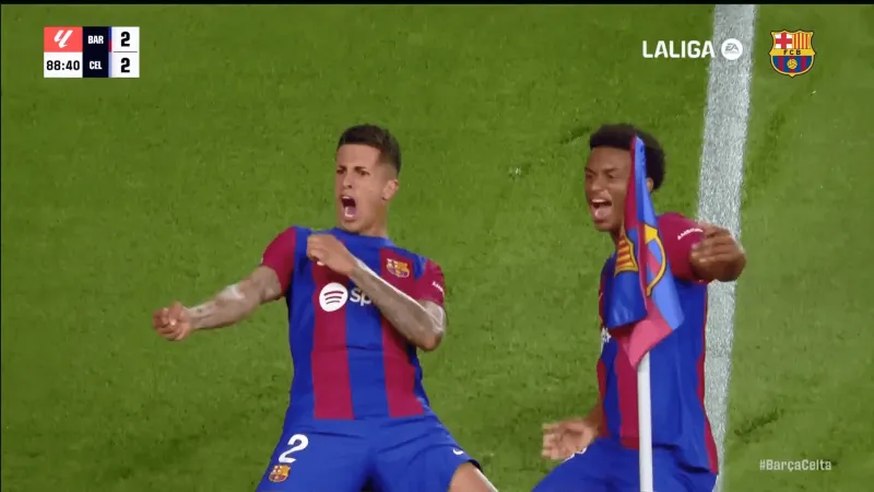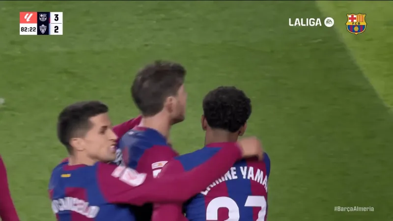 弗里克准备4月27日与皇马的决赛国家德比,13日轮休打塞尔塔。60分钟1比2落后叫亚马尔奥尔莫上来救场,奥尔莫进一球,亚马尔助攻拉菲尼亚扳平成3比3,奥尔莫造点拉菲点射逆转绝杀。