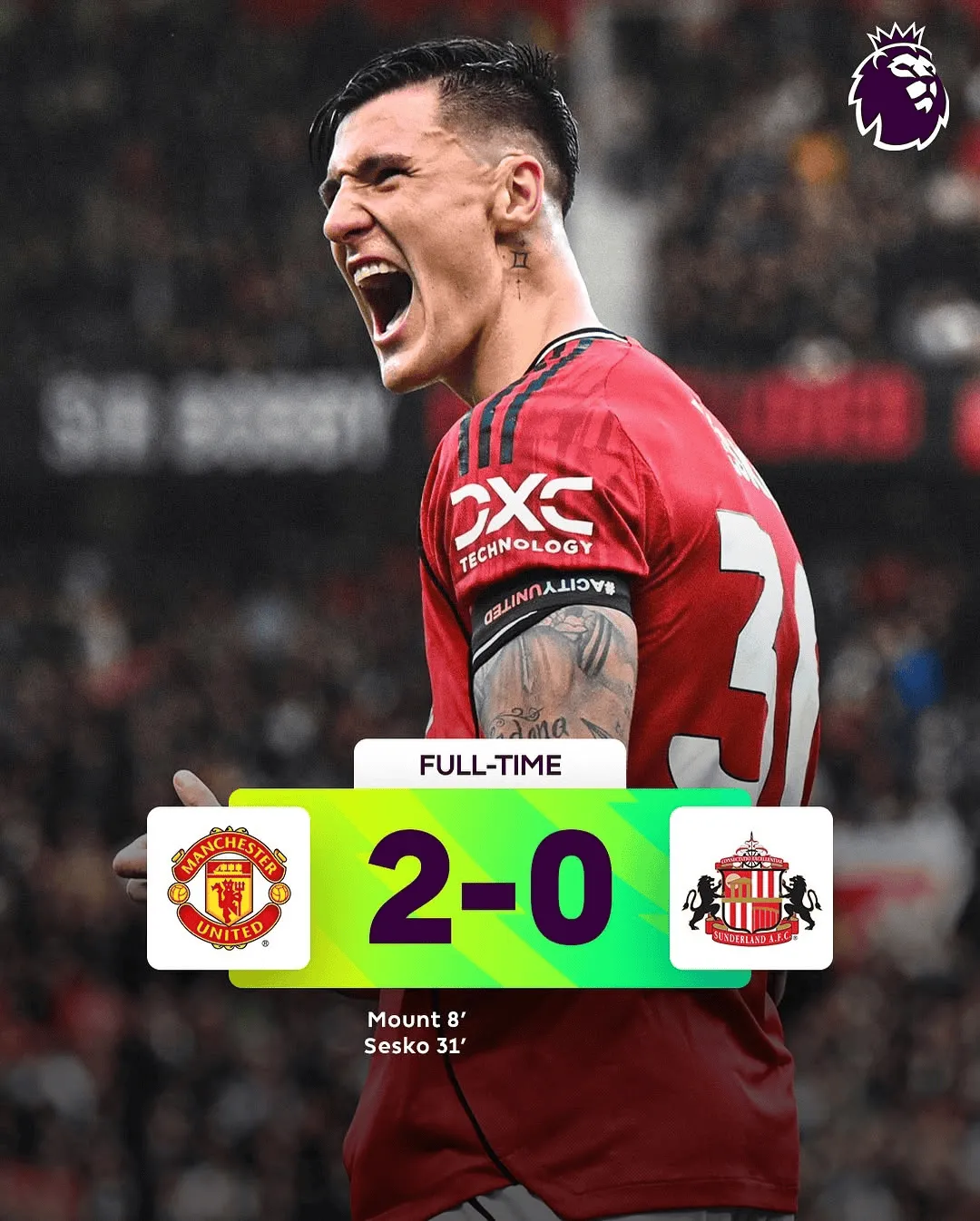 其他球队方面,桑德兰0-2不敌曼联,积分榜上降至第9的位置;曼联则上升至第10。