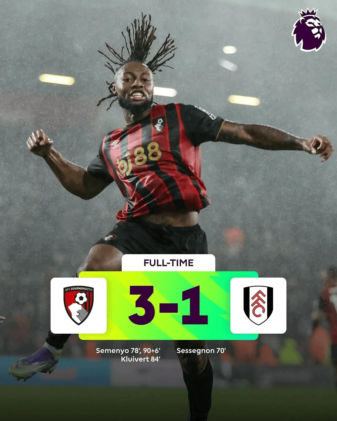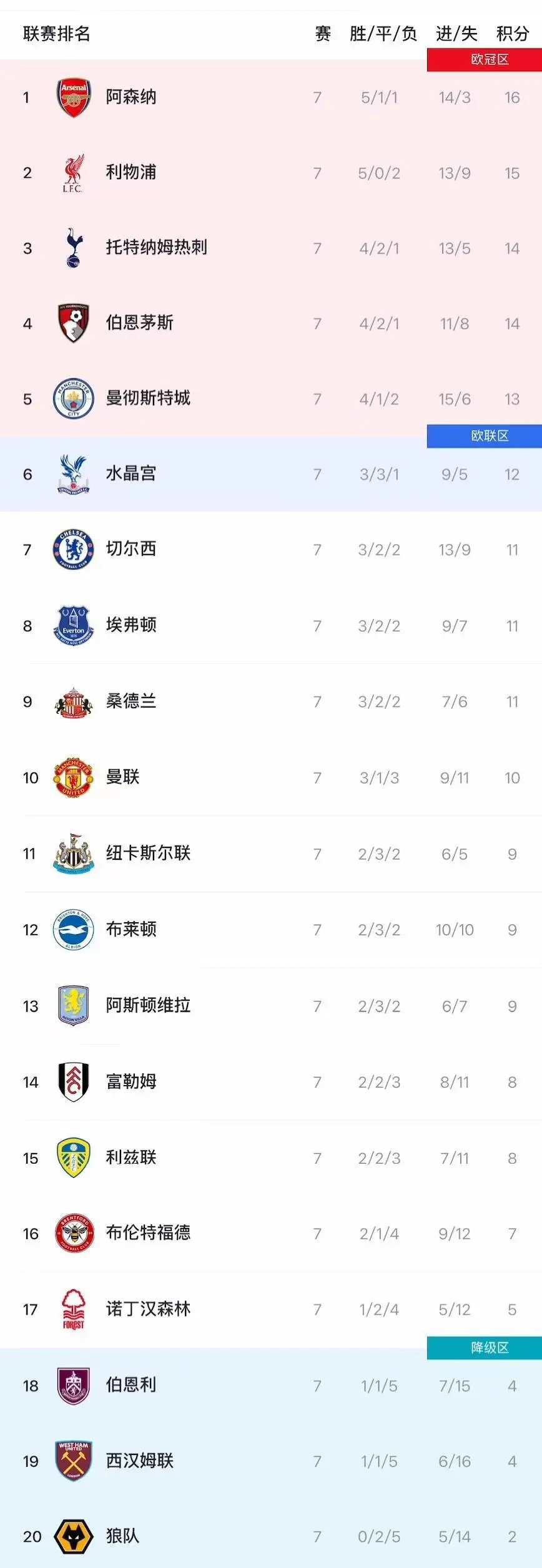 曼城升至联赛第五;伯恩茅斯3-1胜富勒姆,积分榜上来到第4的位置;利物浦本轮依然没有取胜,1-2遭切尔西绝杀;而阿森纳在2-0战胜西汉姆联后,积分反超红军,目前暂居英超榜首;