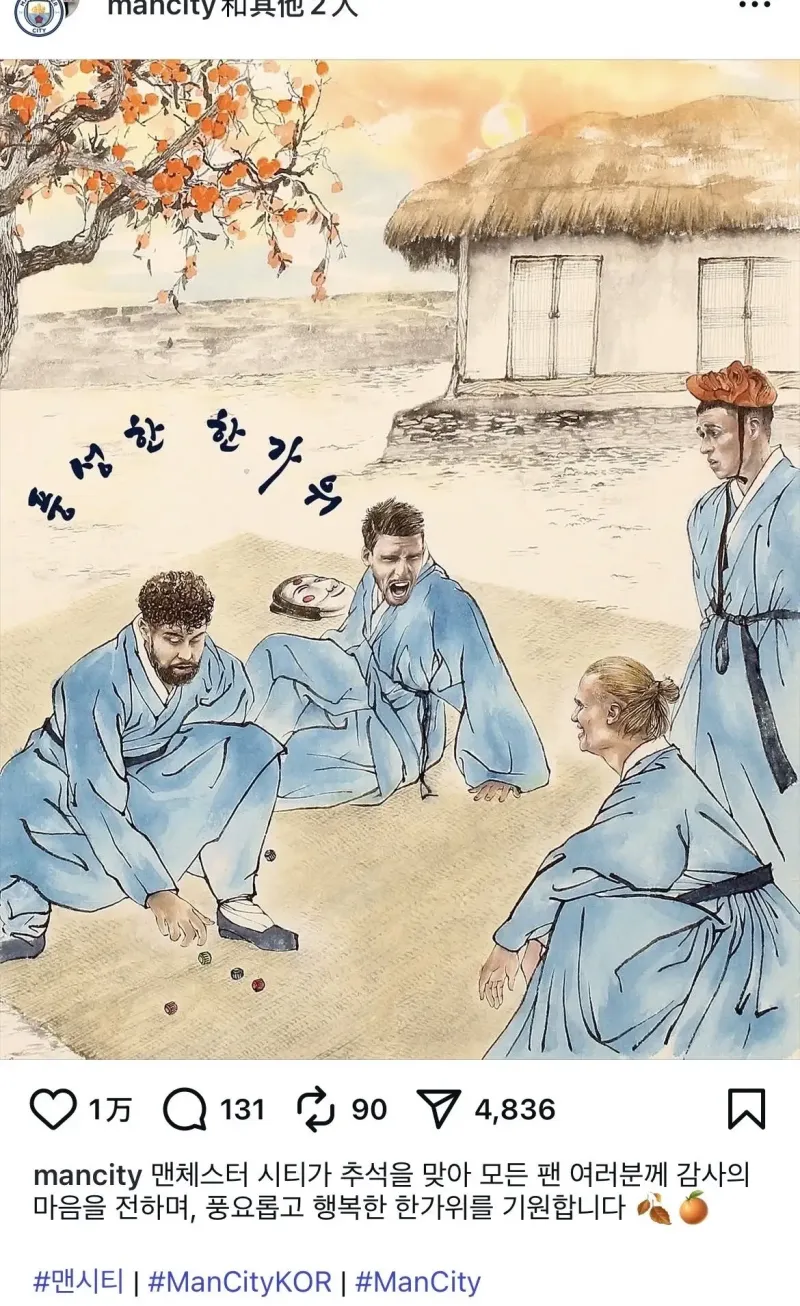 无敌了,曼城球迷说这是祝韩国的球迷呢,中国的球迷人家在微博上祝了的,无敌了