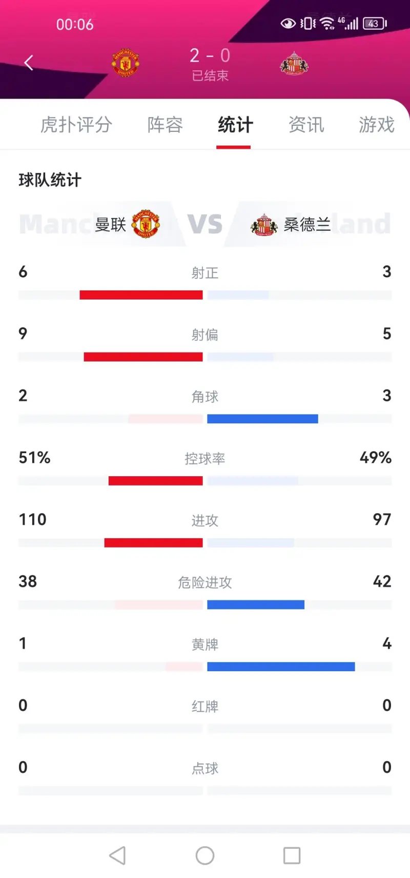 所以我说别想着边翼卫那套,你说的这场我也看了,穆尼奥斯除了一个进球,有其他亮点吗?水晶宫的右路在摇子面前不跟闹着玩一样右边有姆贝,当然补左边锋,真以为主场赢一场黑猫,阿林那战术就有说服力了?也就黑猫前锋够抽象,再加上拉芒真的给力!你说加纳能回来踢个后腰轮换,我倒非常赞成虎扑数据统计将就参考下吧,黑猫危险进攻数据还比我们高!控球率55开,我们没打的黑猫一点还手之力都没!