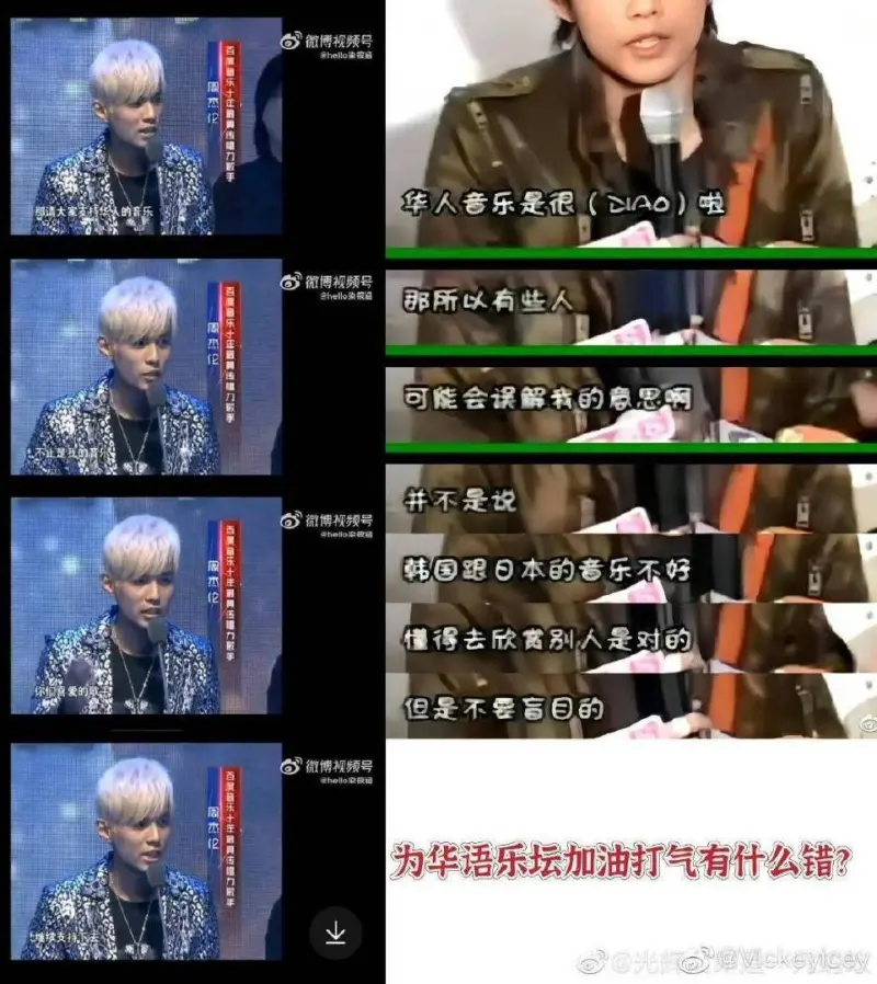 逗比,周杰伦从没说过抵制外国事物,本质还是现在的民粹舆论今时不同往日了,以前很开放,还有什么中日中美中韩那些蜜月期,周杰伦本身就是一个喜欢西方文化的人从他早期的歌曲也能看出来,喜欢欣赏外国文化和热爱祖国并不矛盾,他歌曲里世界各国的风格都有,一直是一个很包容的人,本身也是从小学西洋古典音乐的人,学音乐的那些人本身不都这样?纯国风纯中国乐器根本没法听,毕竟流行乐古典爵士钢琴各类乐器那些全是人家的,但是放到今天你必须全部中国化,不然你就是罕见,这种舆论确实很吓人,连喜欢都不行了