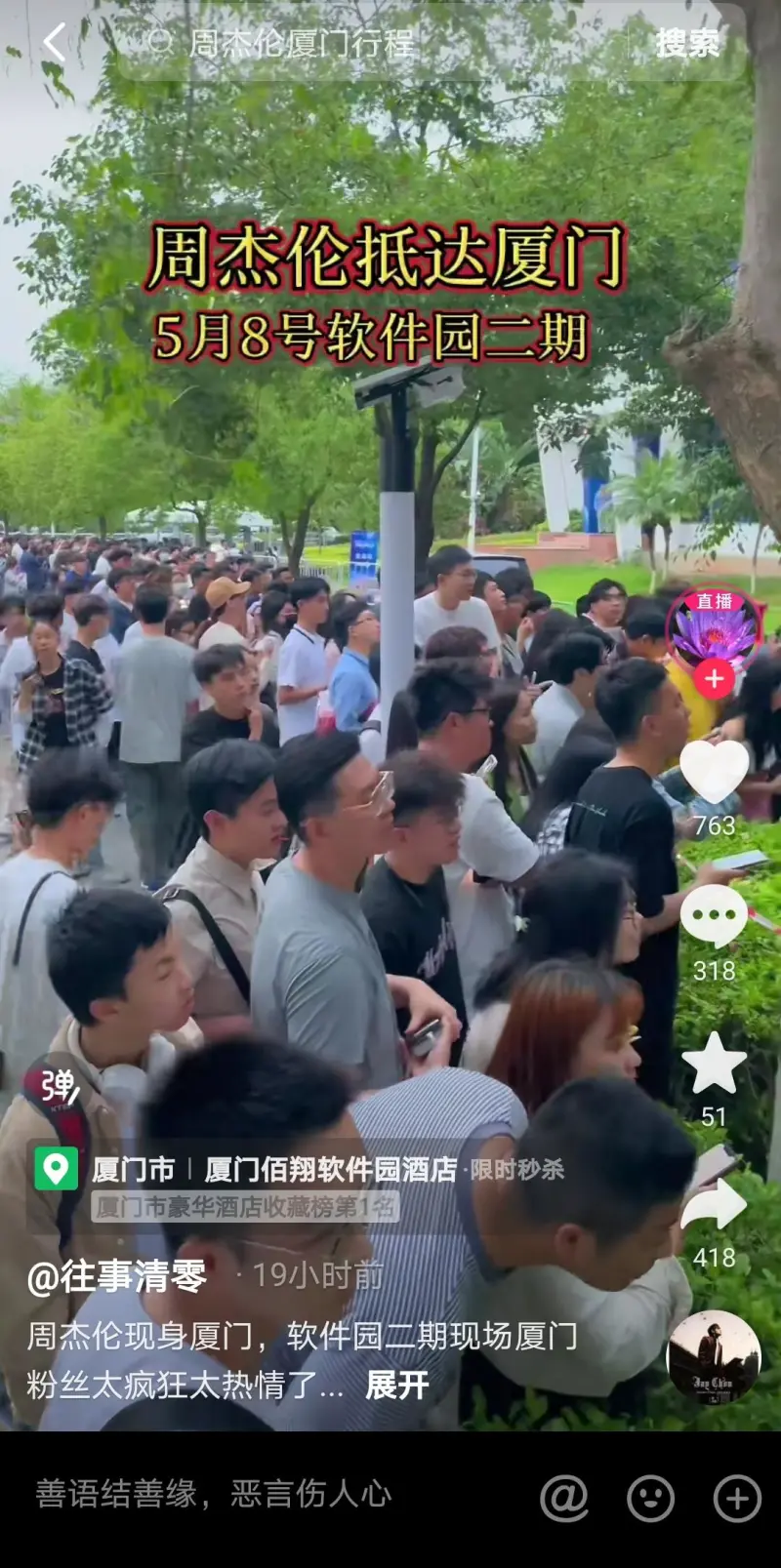 周杰伦他在中国旅游什么风景都看不到 全是粉丝..