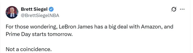 给好奇的朋友们说明一下:勒布朗-詹姆斯与亚马逊签有重大合作协议,而会员日就在明天启幕——这绝非巧合。