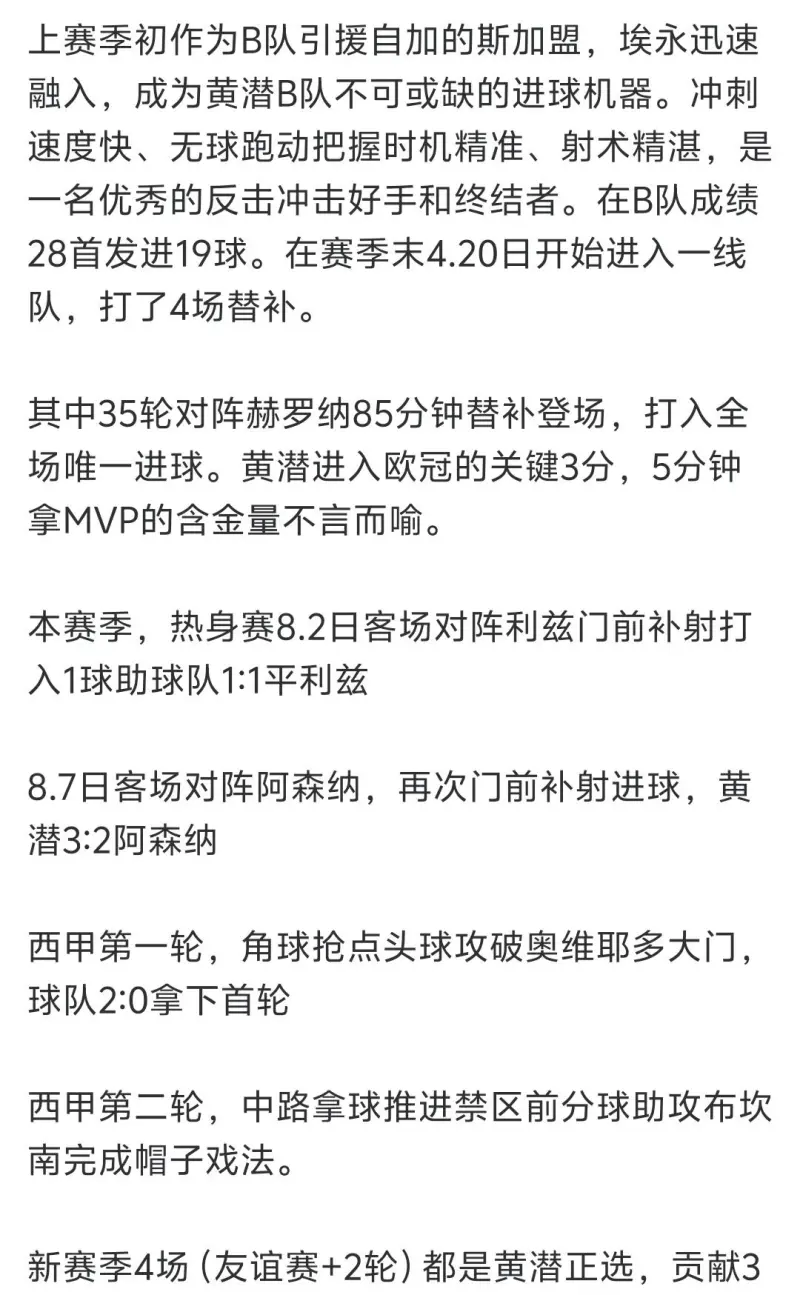 不过没有看过他的比赛(第二轮踢莱万特的时候埃永还在黄潜),不知道实际怎么样,有没有看过的兄弟说一下?