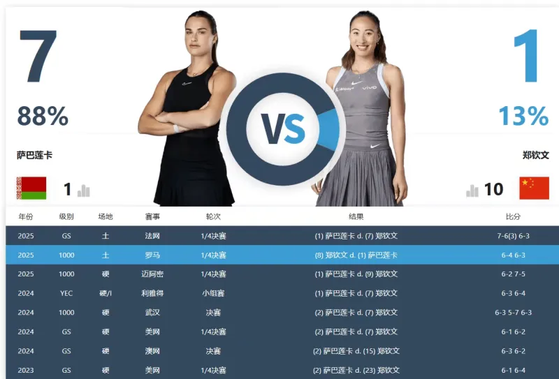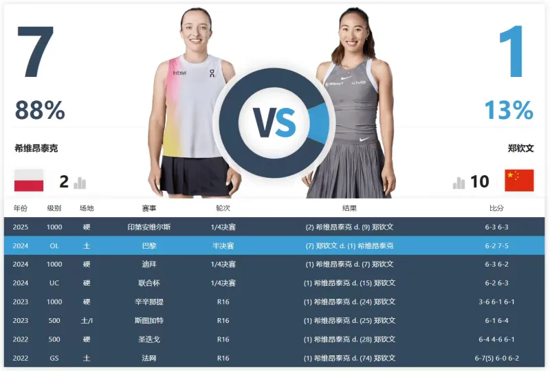 郑钦文本赛季因为肘部伤势缺席了包括美网在内的多站赛事,中国赛季的比赛也因伤仅出席了两场中网的比赛。