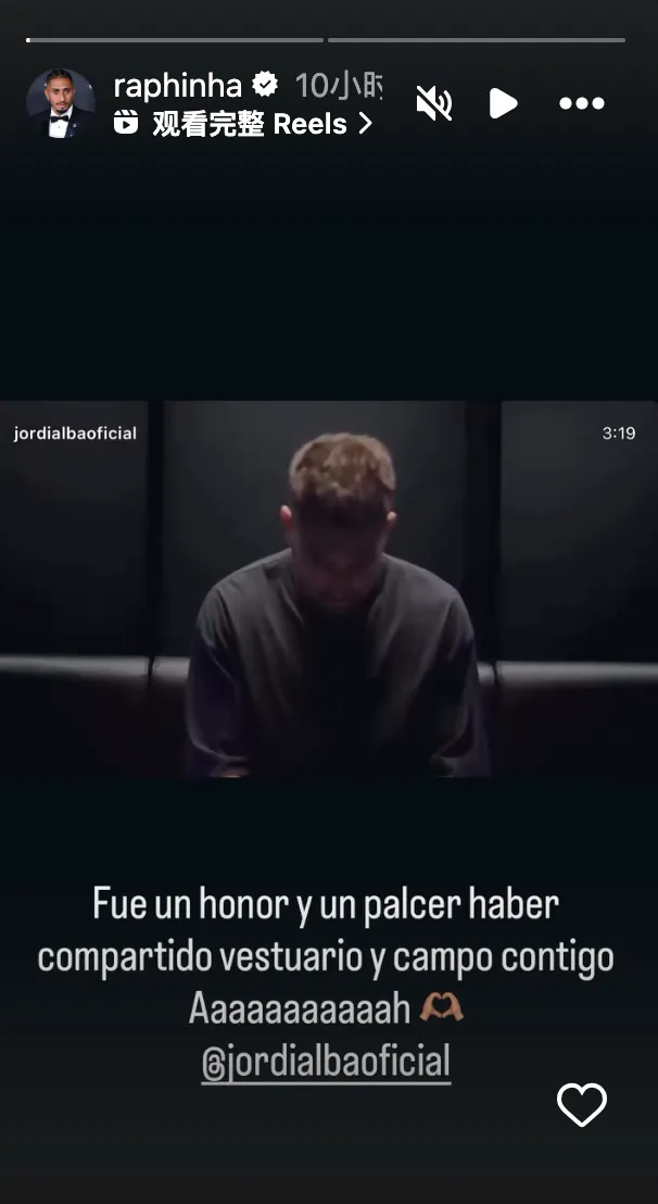 虎扑10月08日讯 阿尔巴宣布将在赛季结束后退役,巴萨边锋拉菲尼亚发文致敬。