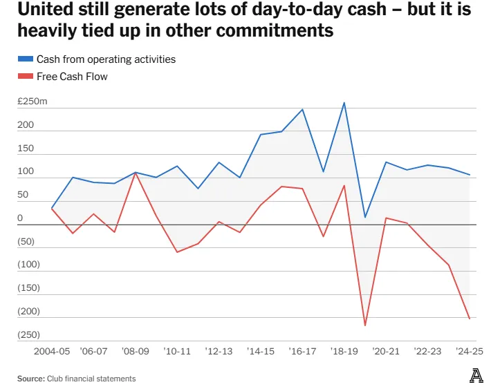 此外,1.828亿英镑的债务需在2026年6月底前支付,这意味着曼联的现金流压力短期内不太可能缓解。