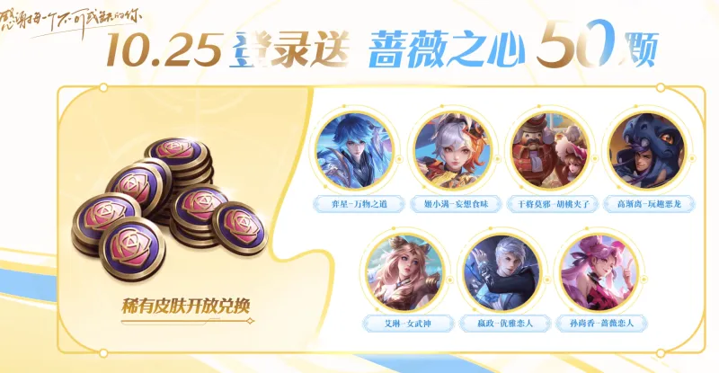 虽说这次珍宝阁并没有上线新的皮肤,但赠送的蔷薇之心却直接翻倍,以往都是25个,这一次直接50个。