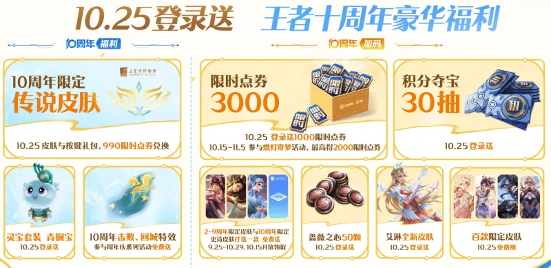 大家好我是指尖,王者十周年的活动终于曝光,光是白嫖的内容就非常丰富,相较于九周年,这次小王真的是下了血本了,一起来看看有哪些重点活动值得关注吧。